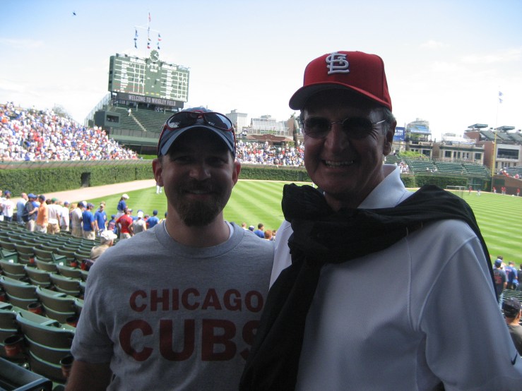 Wrigley Field, Chicago 2008 – Me and my dad. My dad? Lifelong St. Louis Cardinals fan. Me? Lifelong Chicago Cubs fan. Life in my house growing up was interesting, but luckily my mom is a Cubbies fan too. So my dad was outnumbered, but St. Louis has more championships (grr…). Still, this was a trip to the Windy City for he and I just to see the game. An absolutely amazing adventure. Cards kicked our butts though (grr…). Still I managed to have fun. How can you not? Chicago in the summertime? I’m THERE!