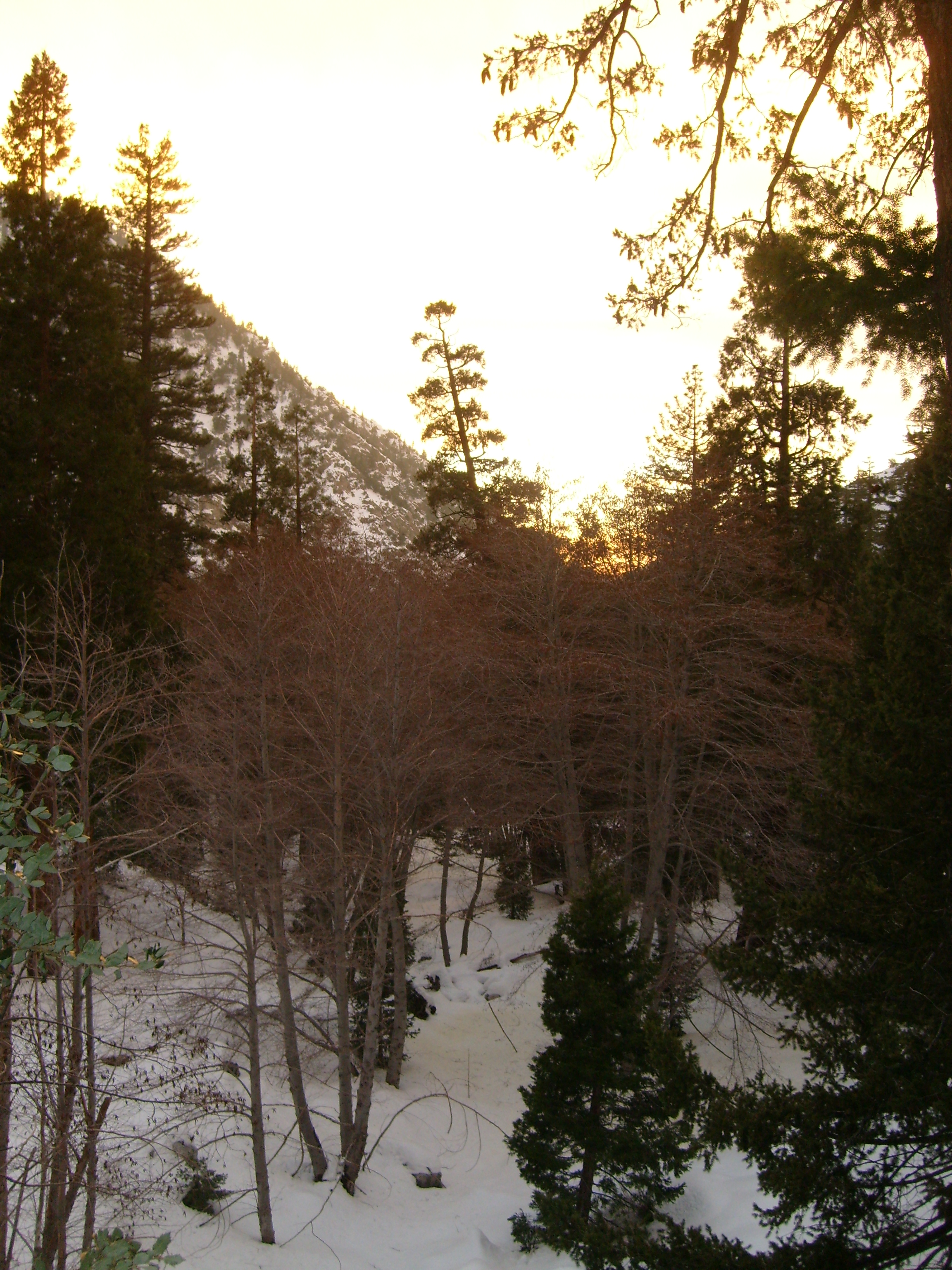 The trail was ice and snow. And cold. In shadow. As the darkness drew closer, the trees seemed to have drawn closer as well, as if protecting me from the world outside. I was cocooned within the trail, within my thoughts. Within the mountain.