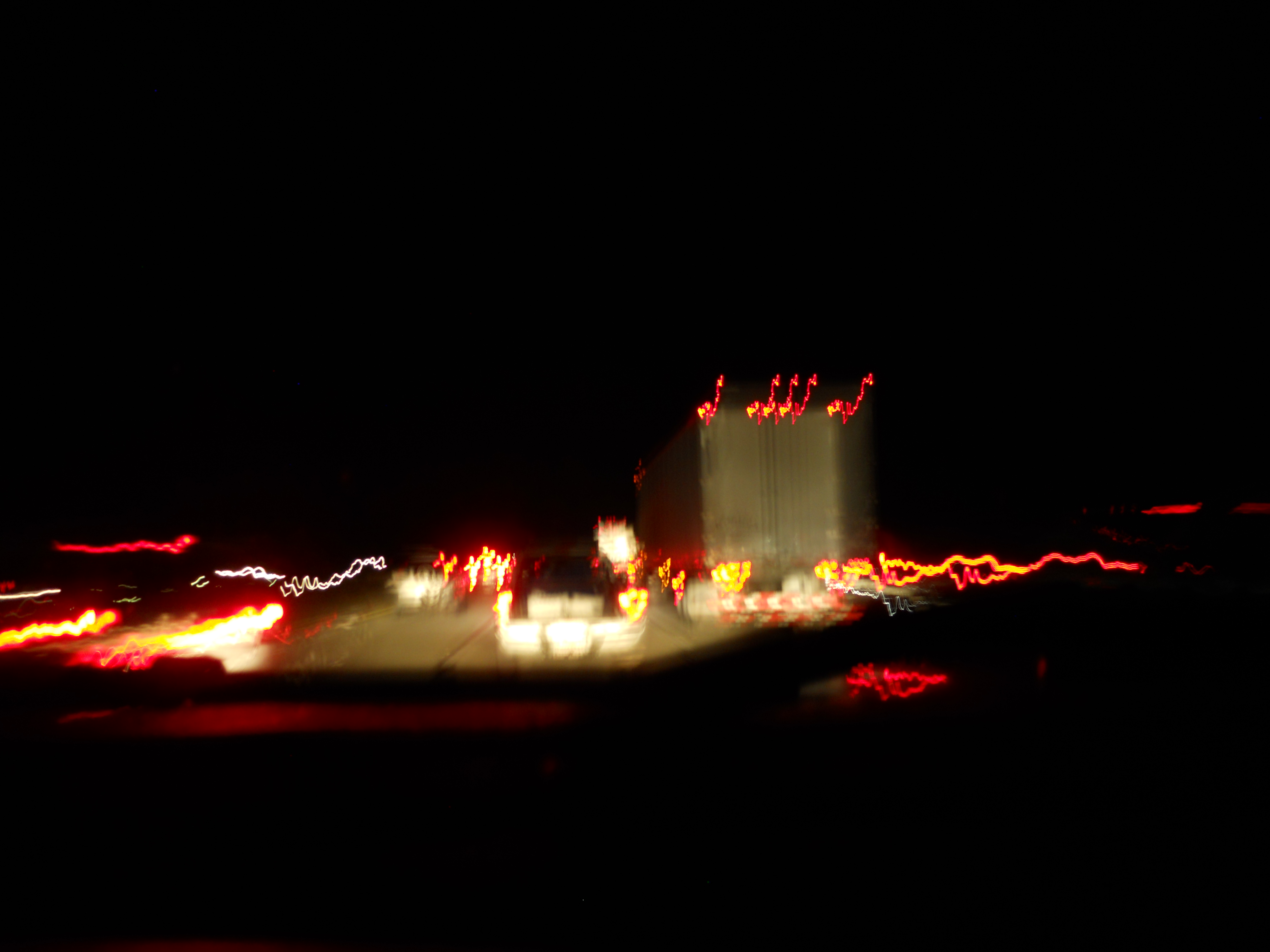 Still, we made good time once we got out of the urban sprawl and onto the open desert interstate. The stars began to emerge and the darkness yawned out before us. The interstate was still quite busier than I’d expected, full of travelers eager to begin their President’s Day weekend. I guess we were no different.
