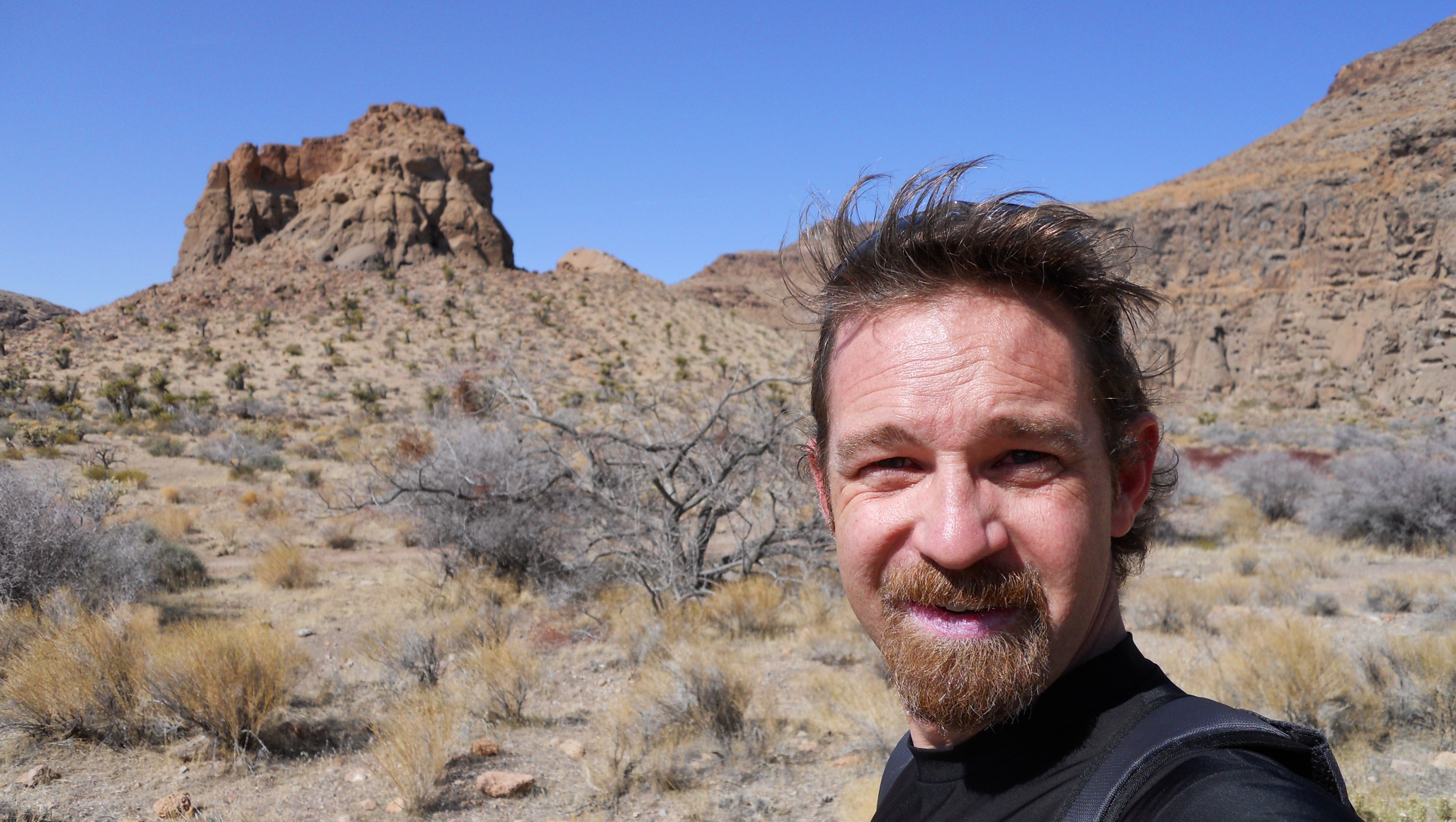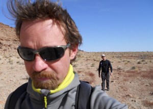 I wandered, as I often do. I took some video with my camera, I snapped some still shots. I took a picture of my feet, and noticed the wind was having its way with my hair. All in all, not a bad time when you’re out in the desert and trying to have a good time. But I wanted to check on Brett, so after being gone for almost two hours I returned to the camp to find him in the exact same position I had left him. Only this time, one eye squinted in the sunlight, and was promptly followed by “this sucks.” I knew he was ready to go hiking.